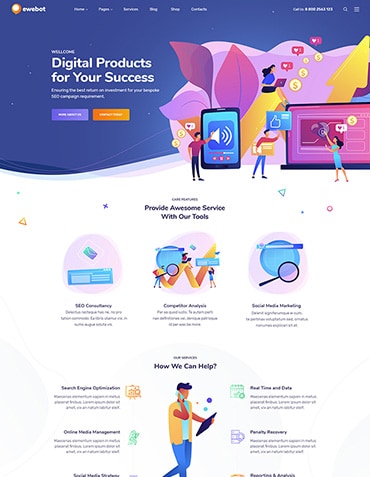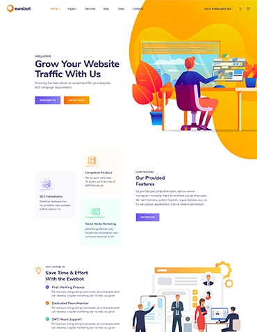Choose a homepage to start navigating Ewebot. Build strong & impressive website using Ewebot pages coming with demo import.